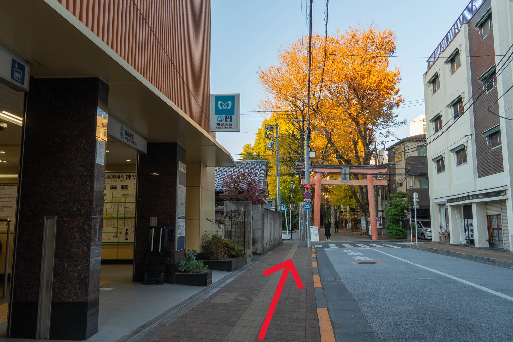 ② 駅を出て神楽坂の街並みをまっすぐ