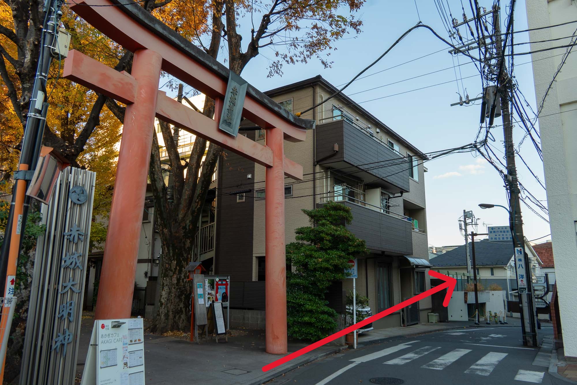 赤城神社の鳥居を目指して、そのまま直進してください。